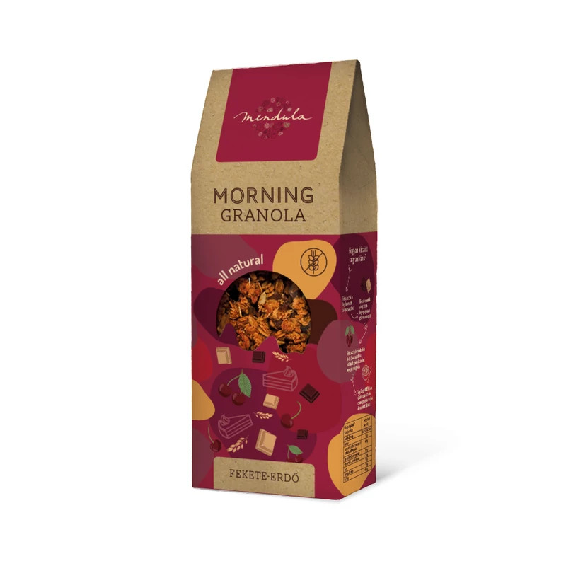 Egy nagy kedvencünk, a Fekete-erdő torta ihlette a legújabb, limitált kiadású granolánkat. A kakaós granola alapra fehér és étcsoki cseppeket szórtunk, majd liofilizált fekete cseresznyével tettük fel az i-re a pontot... vagy a habot a tortára?